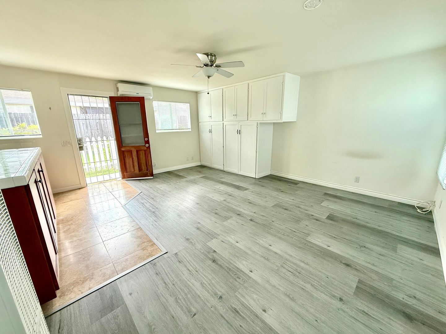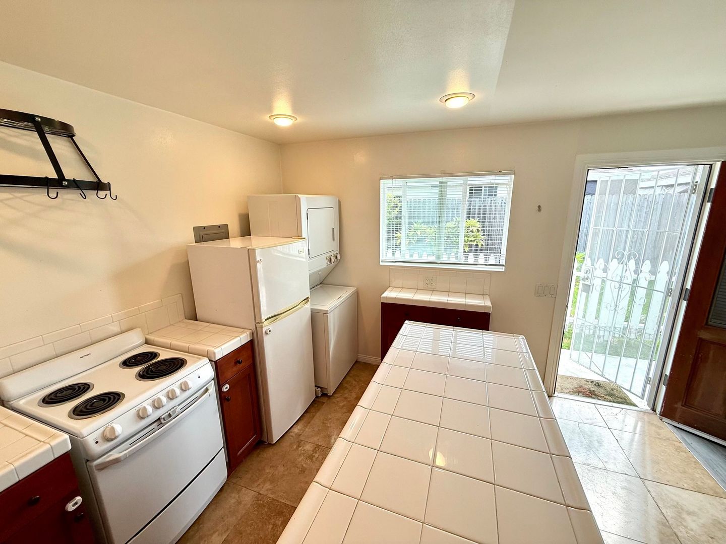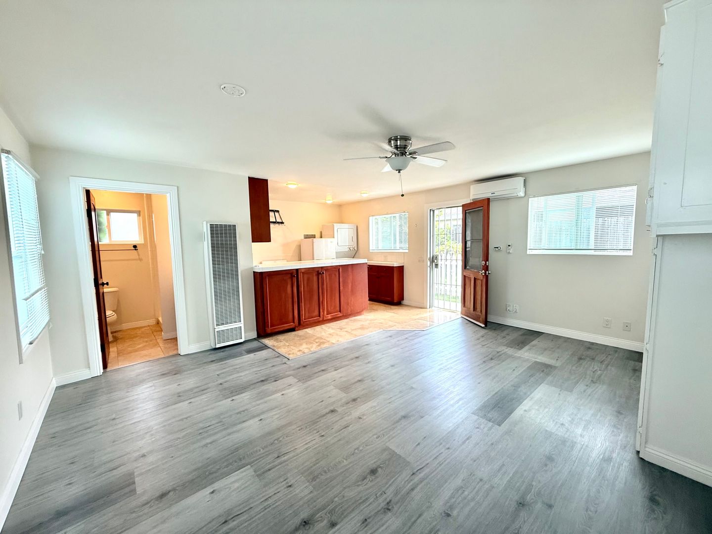 Nice middle studio unit located in a three-unit building on a spacious lot. It features a fully equipped kitchen, a newly installed water heater, newer wood flooring, and newer windows and blinds. The unit includes a refrigerator, washer, and dryer, as well as all utilities. Additionally, it boasts a mini-split system for heating and cooling, ample storage space. This studio unit is ideal for a single occupant. Sorry, NO pets!
