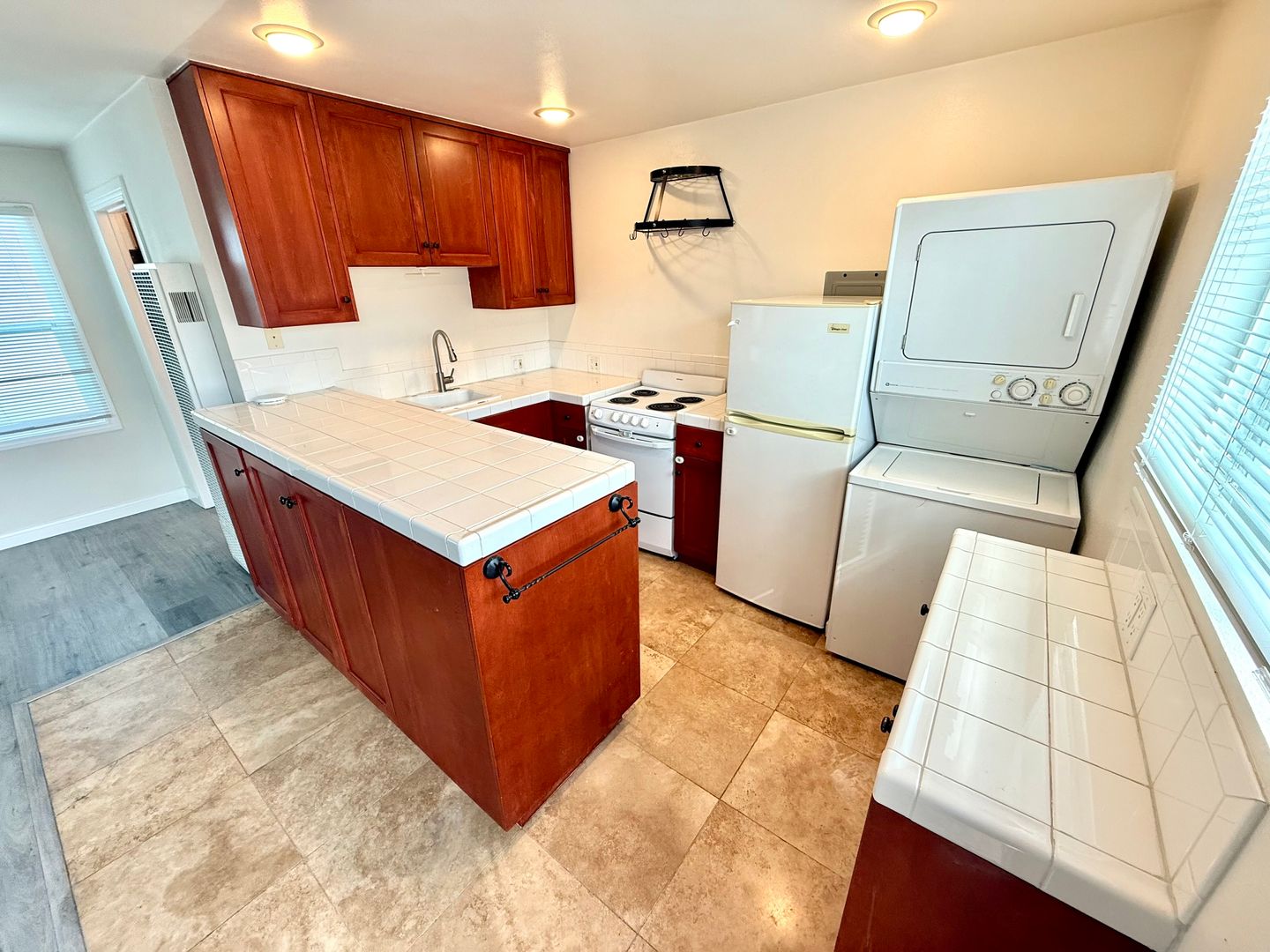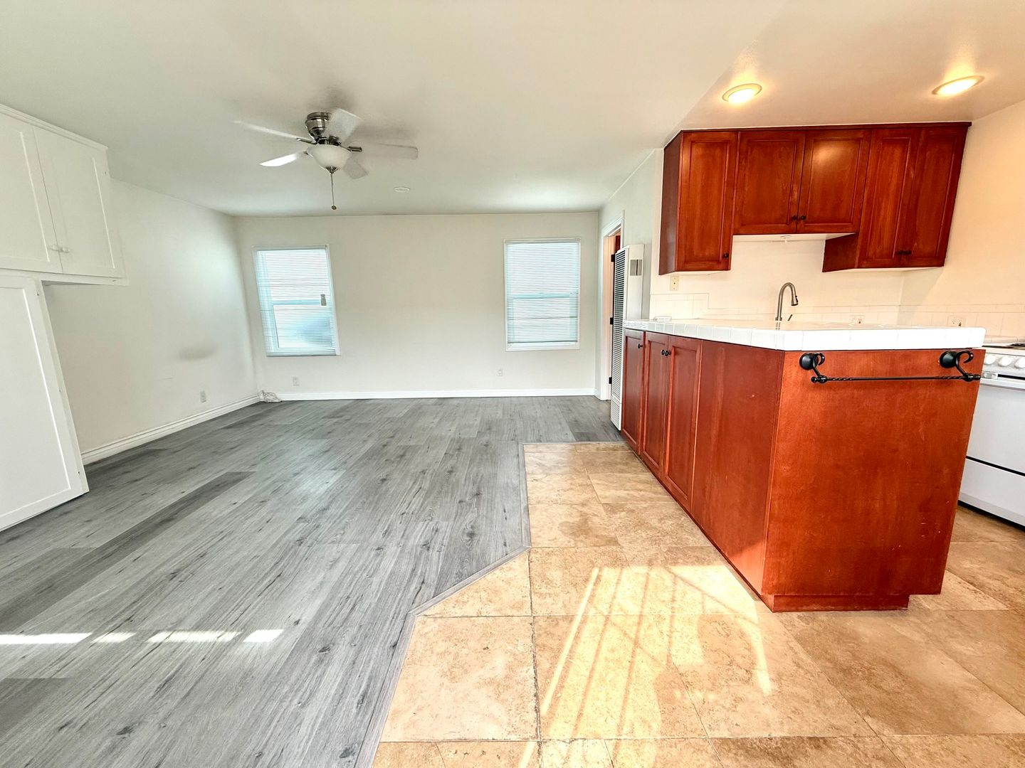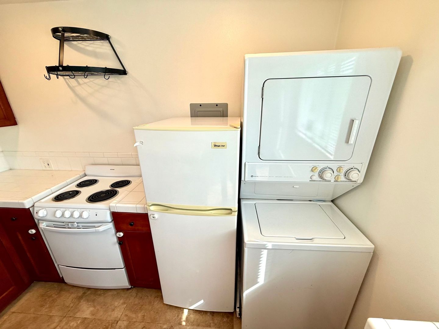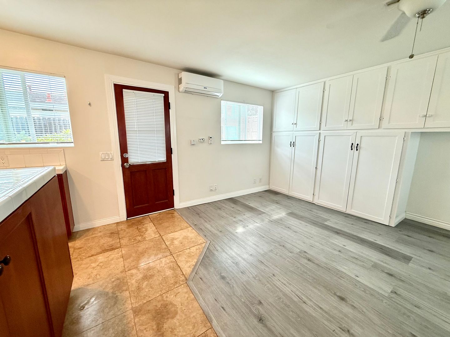 Nice middle studio unit located in a three-unit building on a spacious lot. It features a fully equipped kitchen, a newly installed water heater, newer wood flooring, and newer windows and blinds. The unit includes a refrigerator, washer, and dryer, as well as all utilities. Additionally, it boasts a mini-split system for heating and cooling, ample storage space. This studio unit is ideal for a single occupant. Sorry, NO pets!