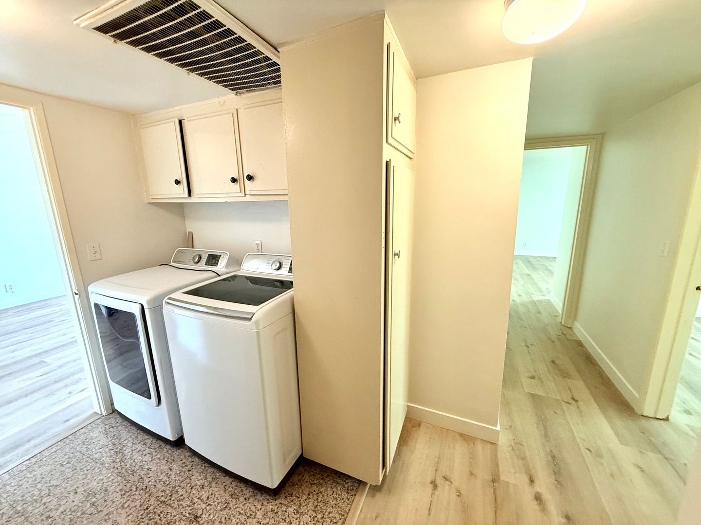 This cozy, south-facing condominium is ideally located in the heart of Monterey Park and offers a bright, open floor plan perfect for small families. The unit has brand new waterproof wood flooring throughout. 2 bedrooms, 2 bathrooms, 1,201 sqft of living space, and spacious master suite. The inviting living room includes a wet bar and sliding glass doors that lead to a large balcony—perfect for relaxing or entertaining. The kitchen offers a charming breakfast nook, and adjacent dining room can also serve as a home office or study area. Additional features include central A/C and heat, an in-unit laundry area with washer and dryer included. 1 designated parking space and private storage room. The gated community boasts a community swimming pool and other attractive amenities. Highly regarded Alhambra Unified School District and conveniently located to markets, restaurants, and public transit. Move-in ready ASAP. Please text/call Jonathan (310) 658-9317 or Florence (310) 993-3040