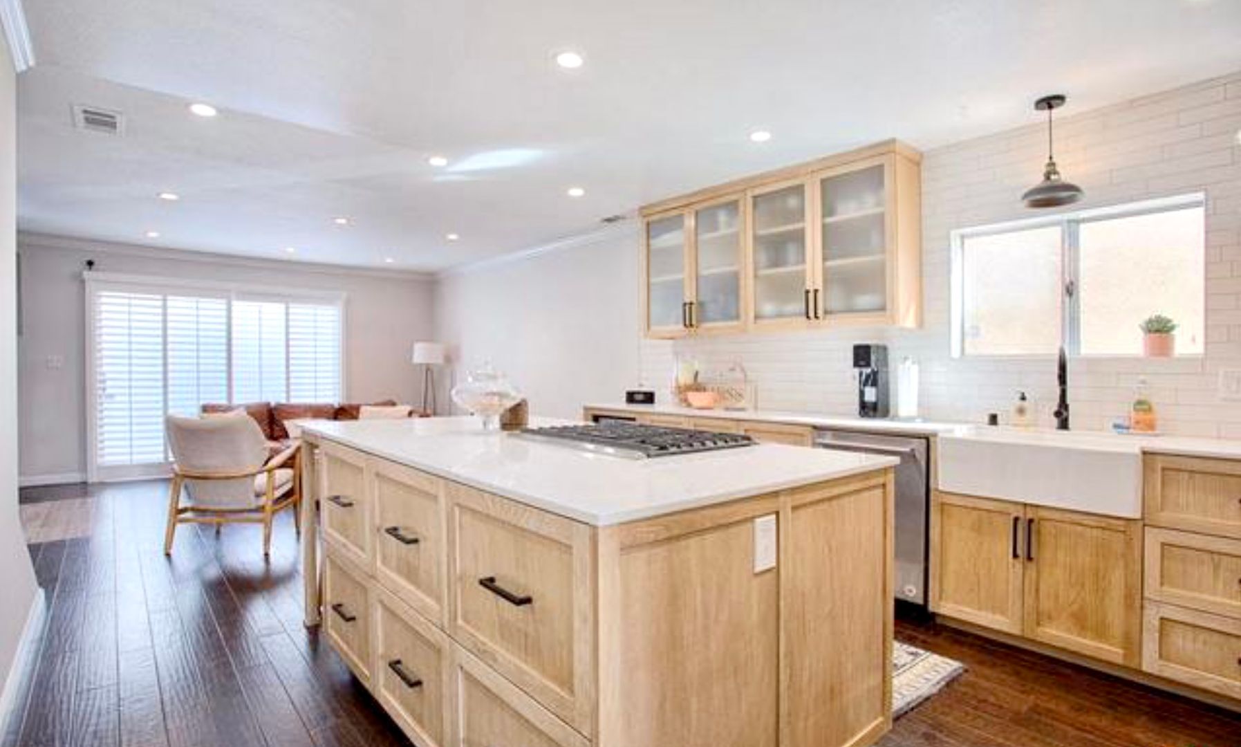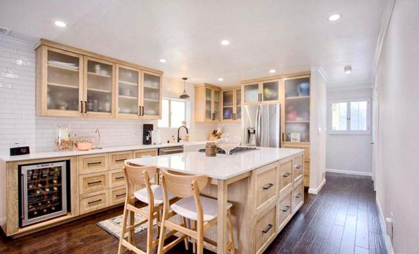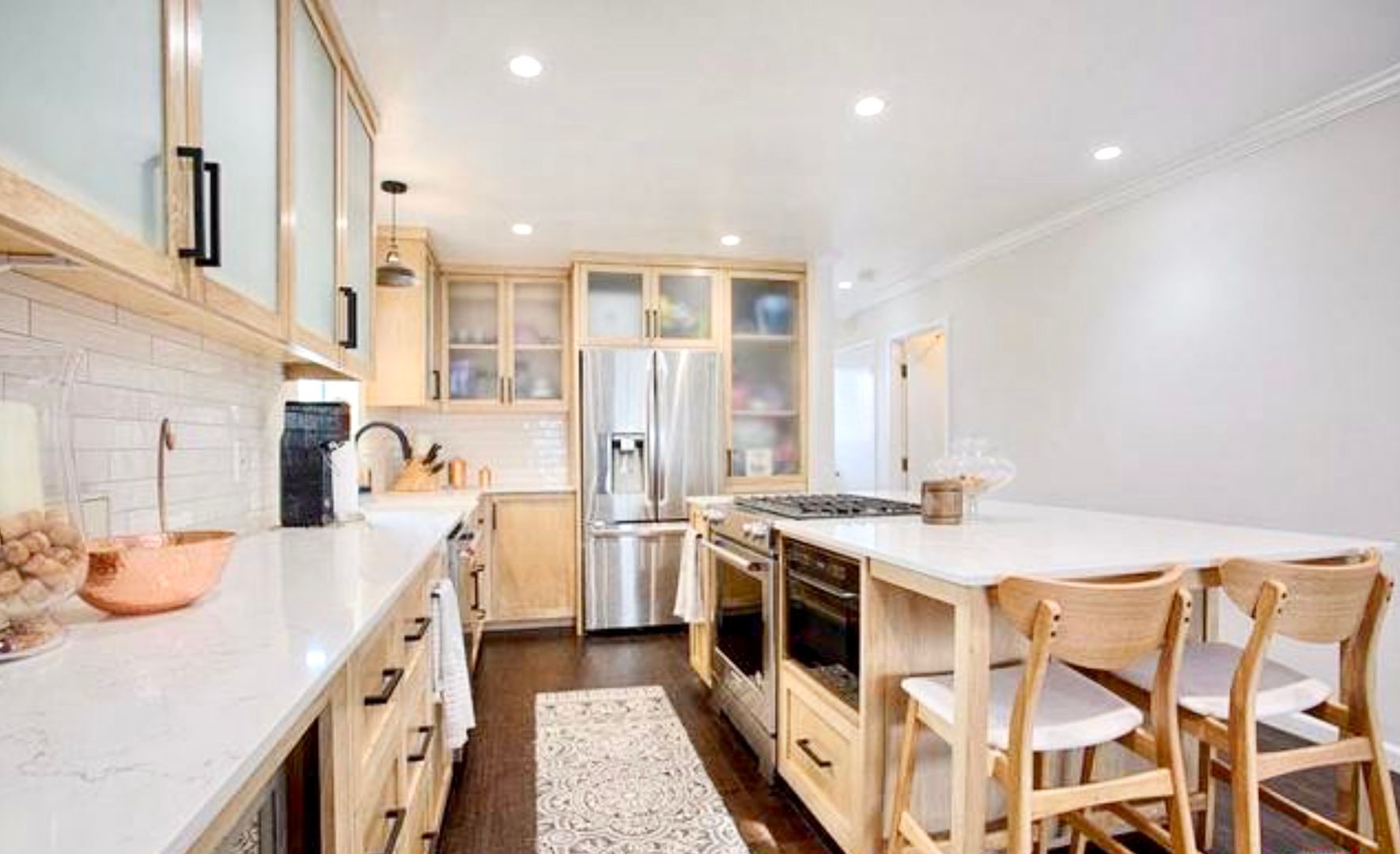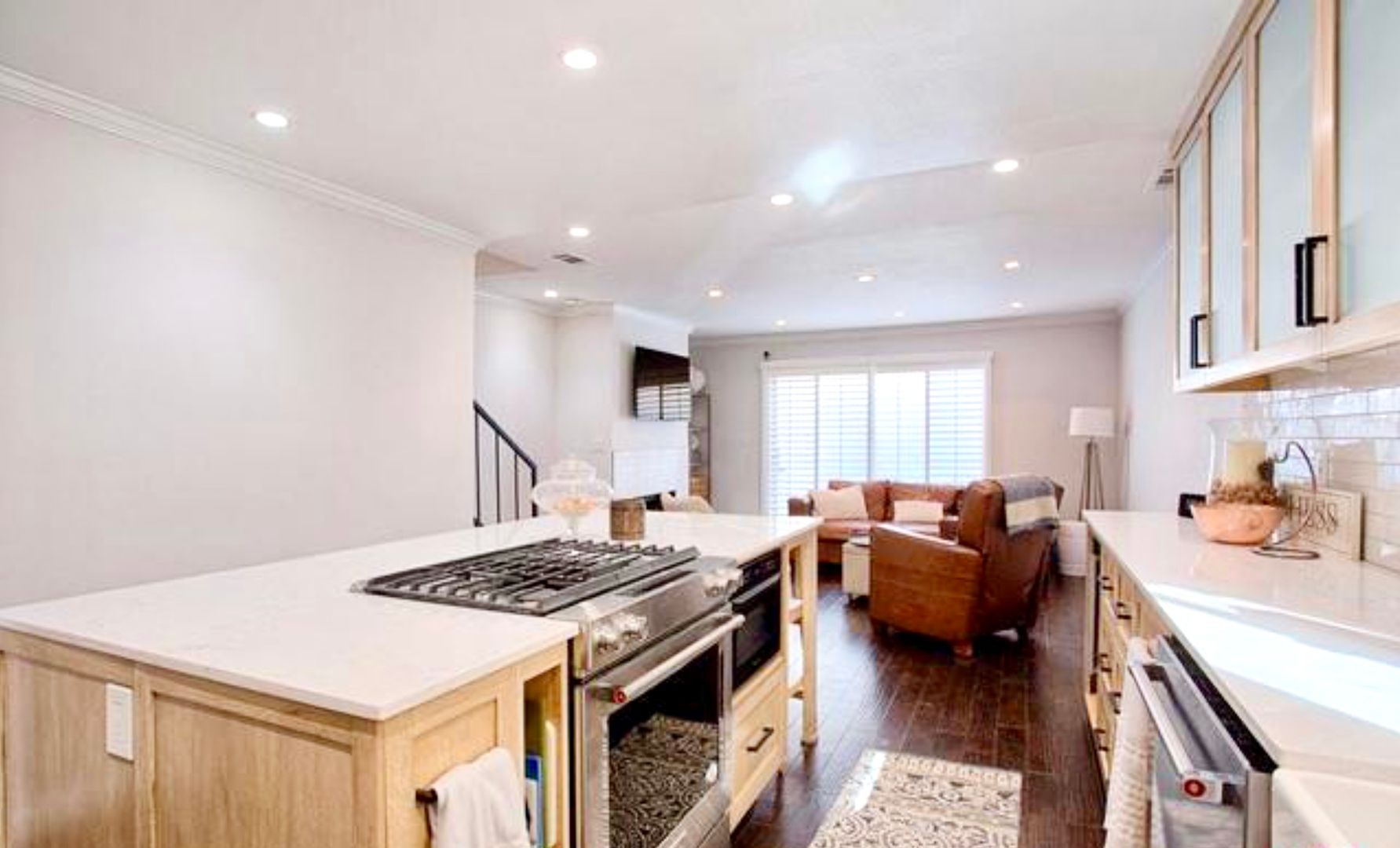 Featuring 2 bedrooms / 2.5 bathrooms, and 1,180 sqft of interior space, this townhome has been upgraded and very well maintained! End unit for more privacy, the front entry hallway features a guest 1/2 bath. Chef's kitchen is updated and features a center island, perfect for entertaining with everything you need. Custom white oak cabinets with quartz countertop, stainless steel appliances include KitchenAid range/grill with downward vent, KitchenAid Dishwasher, LG fridge & wine fridge, and built-in Samsung microwave. Espresso wood floors throughout with open sight lines to the living area and gas fire place. Recessed lighting throughout. New carpet leads to the 2 upstairs bedrooms. Both bathrooms are upgraded with porcelain tile flooring, white ceramic tiles on the shower wall and quartz vanity countertops. Bottom level features private 2 car tandem garage w/ separate laundry room (LG front loading Washer and Dryer provided as courtesy) and separate storage area. Central A/C unit, controlled by NEST Thermostat. Unbeatable Westside location - walking distance to many restaurants, lifestyle plazas and just blocks from the vibrant Sawtelle Japantown, close to UCLA, and easy access to the 405 and 10 freeways. Move-in ready ASAP!
